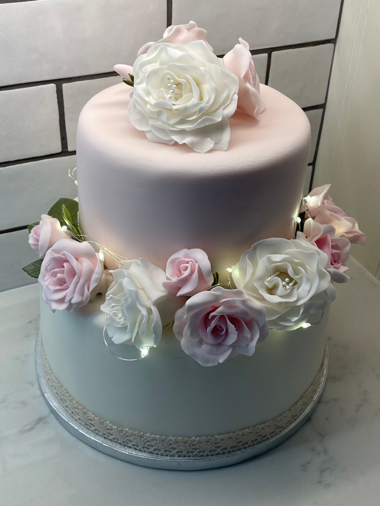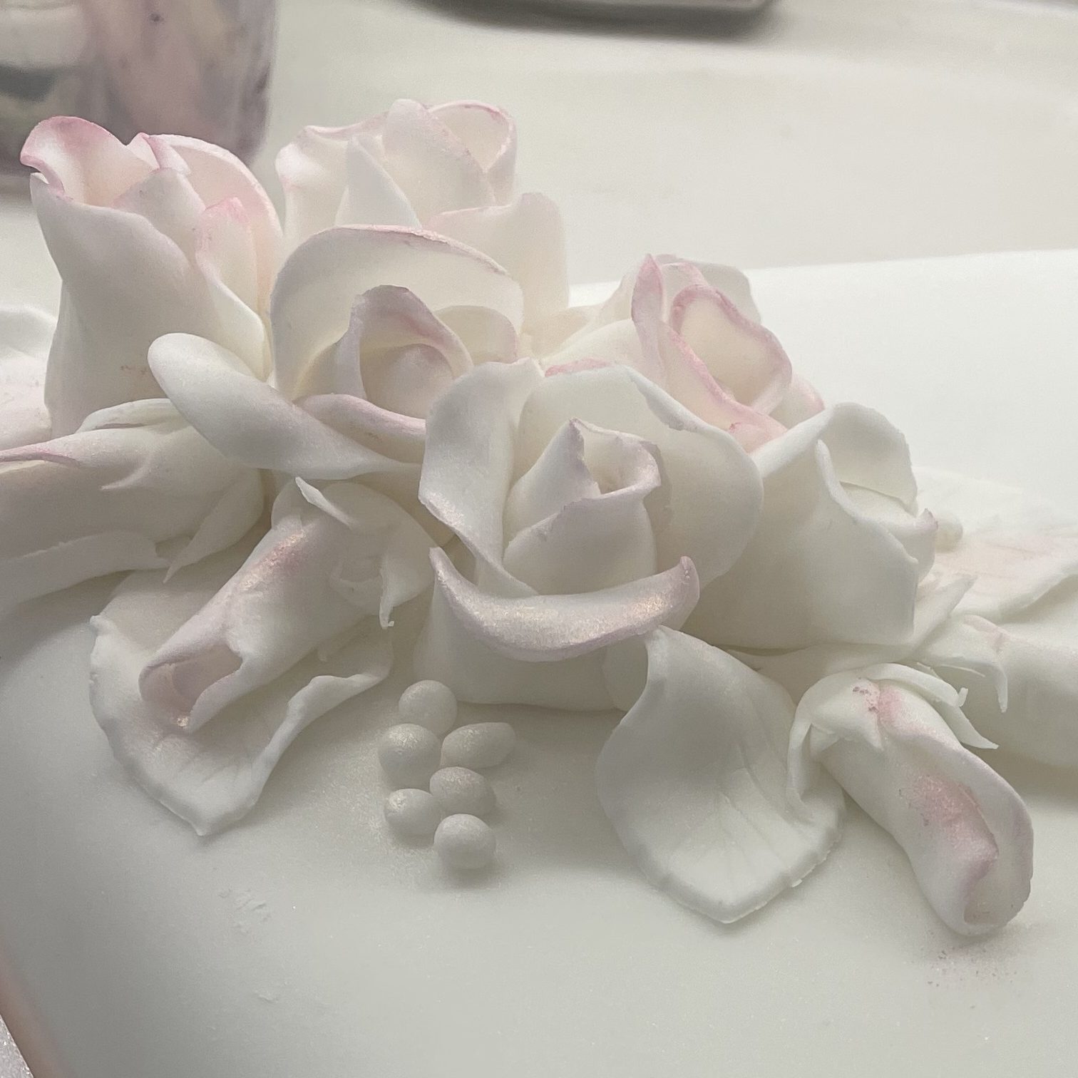 Wired sugar paste flowers are delicate & romantic, they can be created in a shade to complement your wedding theme…. alternatively have naughty cupids playing on the cake!